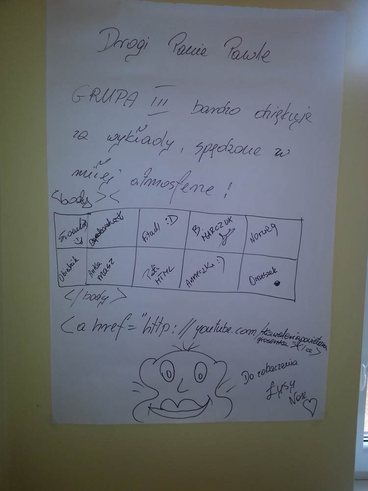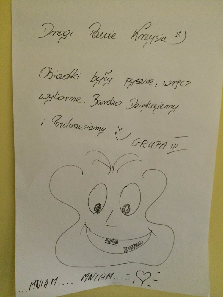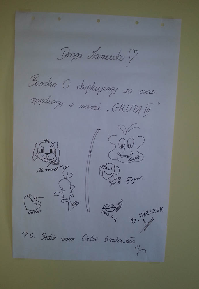Uczestnicy przygotowali podziękowania dla prowadzącego zajęcia oraz firmy cateringowej: